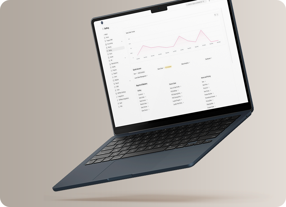 After looking at a few ERP options, ERPNext turned out to be the missing piece. It had the flexibility of open-source software but the structure of a full-scale ERP. Hosted on Frappe Cloud, it promised room to grow without hidden costs.Solvios Technology handled everything hands-on: